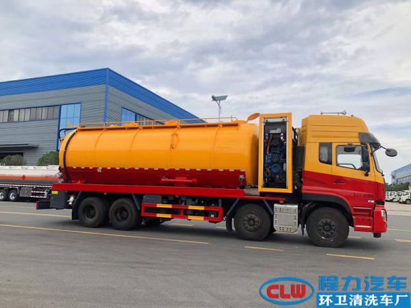 重汽豪沃(22方)清洗吸污车 购车热线:13872897771 底盘配置: 采用东风天龙底盘,工程黄驾驶室(颜色可选),龙擎465马力国六发动机,原厂双层大梁,法士特12档变速箱,轴距1995+2855+1350,295真空胎,原厂abs,带方向助力,离合助力器,气刹制动,带冷暖空调.